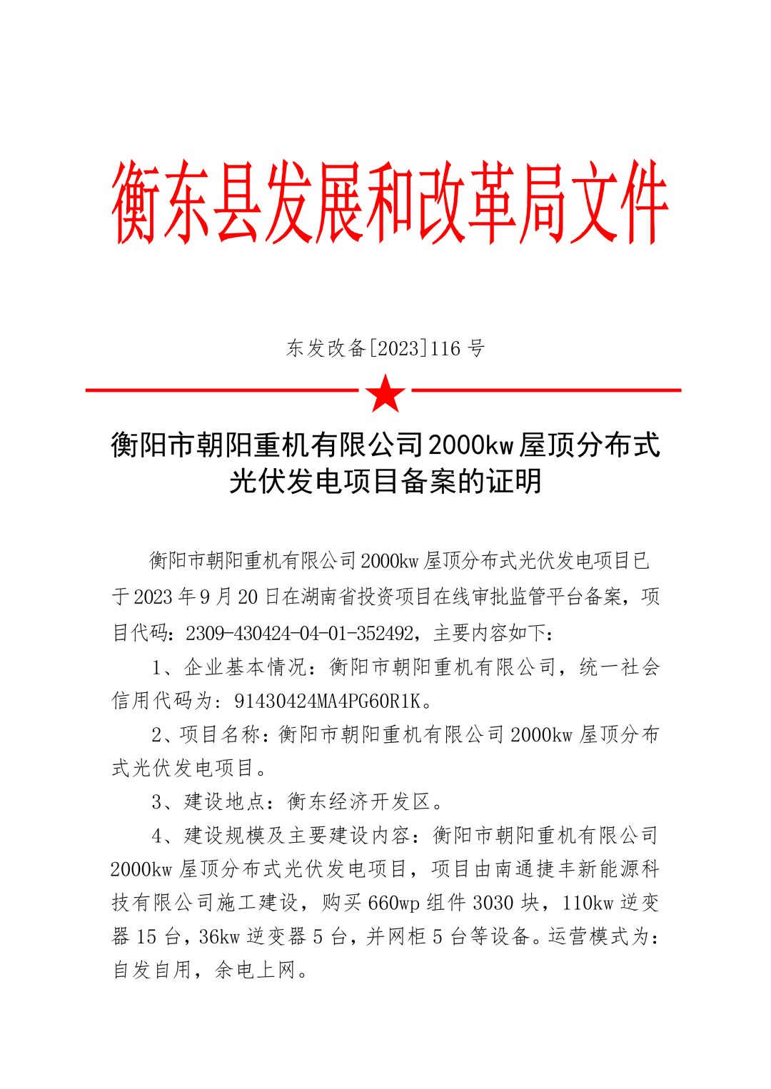 朝陽集團是一家具有社會責任感的企業(yè),積極響應國家綠色雙碳發(fā)展的號召,一直在綠色產品和綠色能源上不斷探索和創(chuàng)新,致力于推動環(huán)保產業(yè)的發(fā)展。公司從源頭的設計開發(fā)上就著重綠色環(huán)保、節(jié)能減排。2023年8月集團的電機產品就獲得了“國家綠色設計產品”和“湖南省綠色設計產品”榮譽。公司這次投入巨資建設光伏項目,又在節(jié)能、綠色能源上走在了區(qū)域前面。