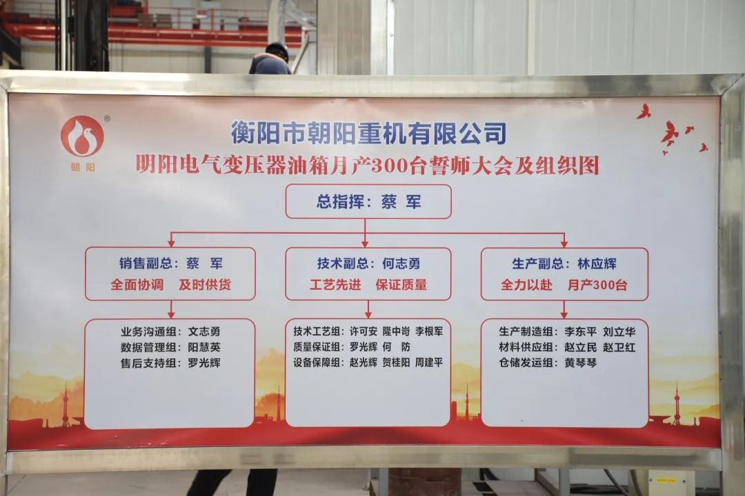 今天的宣誓在我們每個人的心中種下一個火種,將我們?nèi)w朝陽人團(tuán)結(jié)一心、齊心協(xié)力、精益求精,不斷創(chuàng)新,不斷突破,服務(wù)好客戶,提升好自身。以做好明陽電器月供300臺變壓器油箱為起點(diǎn),攻艱克難,持續(xù)追求卓越,不斷超越自我,做出一個客戶滿意、員工幸福、茁壯成長般“驕陽似火”的朝陽集團(tuán)。